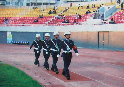 軍事化的管理 統一的服裝、警械配備;嚴格的警衛制度、規范的軍事訓練、統一的內勤管理;嚴謹的巡崗查崗監督制度、規范的獎懲考核制度。形成隊伍六規范:軍事訓練規范、內務衛生規范、執勤上崗規范、儀容儀表規范、文明用語規范、熱情服務規范。